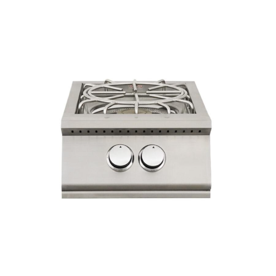 Bring a bit of your indoor kitchen outdoors. The Premier series Pro Burner features a stainless steel outer burner and a brass inner burner. Includes removable lid and wok ring. Inner ring 25,000 BTU’s and outer ring 36,000 BTU’s for a total of 60,000 BTU’s. Push-to-light ignition. Pull out drip tray. 15 year warranty on all parts. This version does not include the blue LED lights. LP