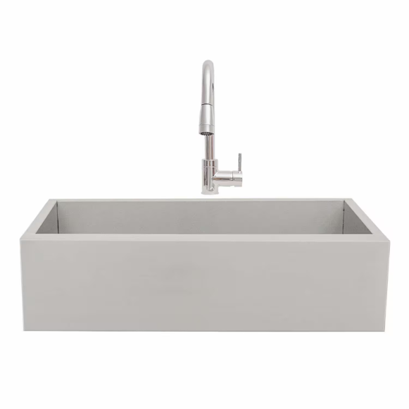 Add style to your outdoor kitchen iwht the 32 Outdoor Farm House Sink. 18 gauge 304 Stainless Steel sink. Includes, sink, faucet, drain, strainer, basin grate, and cutting board.