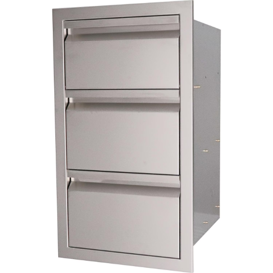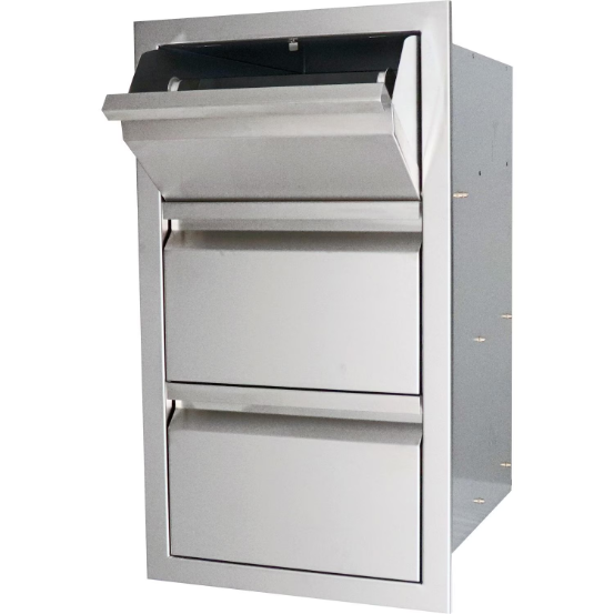 The RCS Valiant Series Double Access Drawer and Paper Towel Holder Combo features 304 stainless steel construction for durability against the outdoor elements. The fully enclosed design lets you store any of your grilling and cooking accessories without exposure to the outdoor elements. The tilt-out paper towel dispenser at the top lets you store your paper towels inside your cabinet, that way they stay dry for the next use. The soft-close drawers will close smoothly and quietly, and their full-length tracks and double-lined doors give them sturdiness. The recessed handles give the drawers a sleek look that will complement any outdoor kitchen or BBQ island.