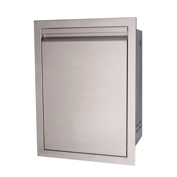 The RCS Valiant Series Single Trash Bin features 304 stainless steel construction for durability against the outdoor elements. If anything falls out of the included 13 gallon plastic bin, the fully enclosed design will prevent anything from falling into your outdoor kitchen or BBQ island. The double-lined door has a recessed handle for a sleek design that complements any outdoor kitchen or BBQ island. The drawer has soft-close tracks for smooth, quiet closing.