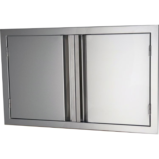 The RCS Valiant Series 45-Inch Double Access Door features 304 stainless steel construction for durability against the outdoor elements. These doors are double-lined for sturdiness and feature recessed handles, which gives them a sleek look to complement any outdoor kitchen. They can also open a full 90 degrees, so you get unobstructed access to the inside of your outdoor kitchen or BBQ island.