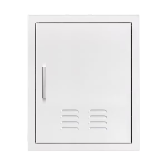 Add necessary and convenient storage to your outdoor kitchen with Summerset Doors. Offering easy access to your BBQ Island, storage solutions for cooking tools and utensils, and durable construction for the outdoors – our doors will make your outdoor kitchen efficient and functional. For a wonderfully sleek built-in look, all doors offer easy flush mounting and a handy magnetic latch to keep doors closed, secure, and orderly. Summersets 18 x 22 Vented Vertical Access Door left handle offers #304 stainless steel construction, reversible door mounting, #304 Stainless Steel Solid Bar Handles, and a Gold Standard Lifetime Warranty.