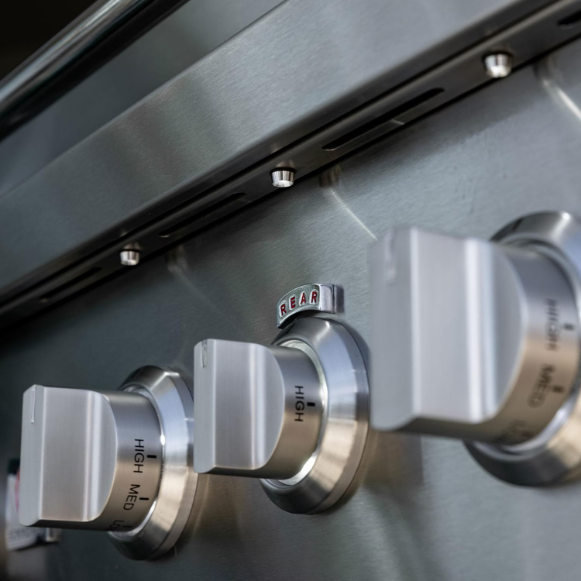 • Infrared rear burner with 40lb rotisserie kit for roasting large cuts of meat