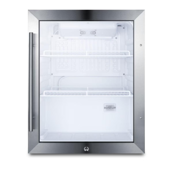 The Summit SPR314LOSCSS is a compact beverage merchandiser conveniently sized for freestanding use on top of counters. It is ETL-S listed to NSF-7 standards and meets UL-471, with a weatherproof design to ensure safe use in outdoor spaces. The stainless steel trimmed double pane tempered glass door includes a pro style handle and front lock for added security. The door is user-reversible to accommodate any setup. This unit comes in a stainless-steel wrapped cabinet and sealed back for added protection from the elements.