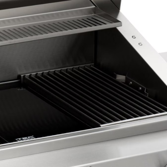 Newly improved from TEC, the Sterling Patio FR series of grills is better than ever! Featuring an innovative grilling system capable of cooking from a searing hot 900 degrees Fahrenheit, down to a low 200 degrees, great for low-heat smoking, searing, and everything in between. The TEC Sterling Patio FR 26-inch natural gas grill cooks with 100 percent infrared energy with no hot or cold spots, eliminating hot air and reducing moisture loss in food by up to 35 percent. The fuel efficient 30,000 BTU burner uses less fuel than other grills, saving you money on gas. Convenient electronic ignition supplies a reliable spark to ignite the burners safely. TEC uses a patented flare-proof stainless steel infrared burner system combined with a radiant glass emitter panel, resulting in tender, juicy, charbroil flavored food. The position of the stainless steel cooking grates, radiant glass panels, and infrared burners creates even heat distribution across the cooking surface and virtually eliminates flare-ups. The 296 square inch cooking surface is covered by unique, U-shaped cooking grates which heat very quickly, delivering restaurant-style sear marks on your food. TEC Sterling Patio grills are capable of heating up to 900 degrees in 10 minutes with the hood closed, making long preheating times are a thing of the past. The need for a side burner is also eliminated because you can place your pots or pans on the cooking grids or radiant panels to heat and cook like on an indoor cooktop. Enjoy quick and easy cleanup, with a self-cleaning cooking surface that incinerates food and debris in 10-15 minutes while the grill is on high. Handcrafted in America, this 26-inch freestanding grill features a sleek, contoured double-lined hood and thick gauge, 304 grade stainless steel with red metal control knobs on a stainless steel pedestal base. All TEC grills are CSA certified.