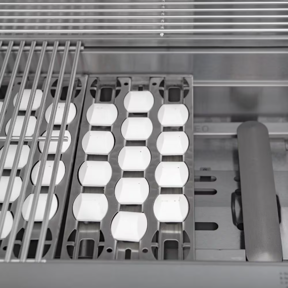 - Radiant Heat System with high-grade ceramic briquettes helps evenly distribute heat