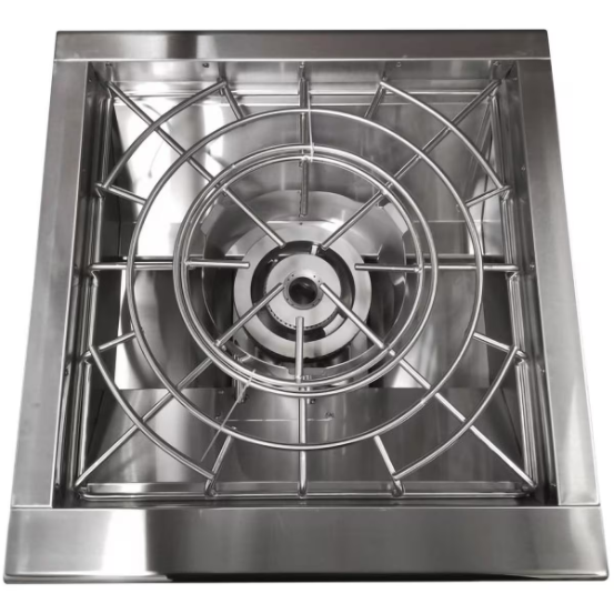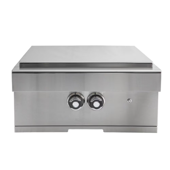 Expand the cooking versatility of your outdoor kitchen island with Turbo side burners. This propane gas power burner is made with durable, 304 stainless steel and features a stainless steel dual ring burner with independent controls for flexible heat control. The dual ring burner give you the freedom to simmer with low heat using one burner or use both burners to quickly bring large pots to a boil with 60,000 BTUs of cooking power. A stainless steel cover is included for added protection when not in use. Ignition is made easy with push and turn knobs that offer a reliable flame with every start and the full-width drip tray makes cleanup a breeze. Blue LED control panel lighting provides added visibility for cooking and entertaining any time of day.