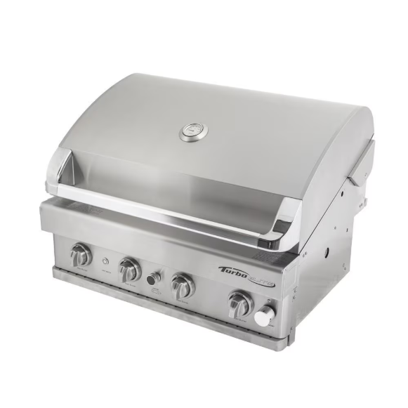 The Turbo Grills Elite series of gas grills allows you to enjoy the luxury outdoor kitchen experience at a more economical price. Turbo Grills are designed to weather the elements with commercial-grade 304 stainless steel construction, ensuring years of enjoyment with proper care. This 32-inch grill offers 740 square inches of cooking space across heavy-duty stainless steel grates and a stainless steel warming rack. Four 12,000 BTU stainless steel burners and one 12,000 BTU rear infrared rotisserie burner crank out the heat, rated for a combined total of 60,000 BTUs of raw cooking power. The Turbo Grills Radiant Heat System uses high-grade ceramic briquettes to evenly distribute heat and vaporize drippings to infuse foods with extra BBQ flavor. Grill and entertain any time of day with blue LED control panel lighting, as well as interior halogen lighting for extra visibility. Includes a rotisserie kit with motor, spit rod and forks so you can start roasting right out of the box with the rear infrared burner. This gas grill is configured for built-in installation using liquid propane gas fuel.
