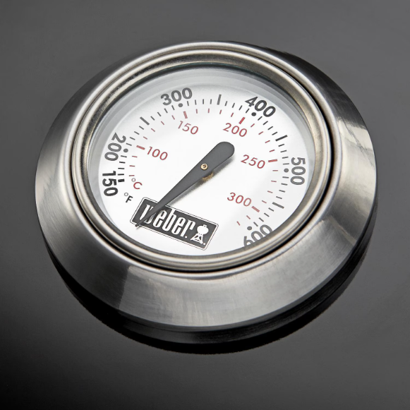 - Conveniently features a built-in thermometer, hinged cooking grate, lid hook and tool hooks on bowl handles