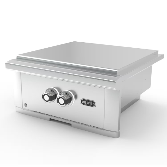 The Wildfire Outdoor Living 24 inch propane power burner is designed for serious outdoor chefs, delivering exceptional performance and style with a choice of Traditional or Black 304 Stainless Steel. Featuring a heavy-duty cast stainless steel burner with 60,000 total BTUs, it provides powerful, high-heat cooking perfect for woks, seafood boils, and more. The LED backlit knob bezels enhance visibility and add a modern touch, making nighttime grilling effortless. Built for durability and versatility, this Power Burner is the perfect addition to any outdoor kitchen, ensuring professional-level results every time.
