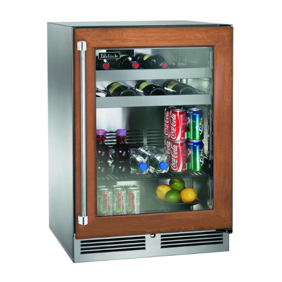 Perlick 24-Inch Signature Series Shallow Depth Stainless Steel Panel Ready Glass Door Outdoor Refrigerator w/ Door Lock – Right Hinged – HH24RO-4-4RL