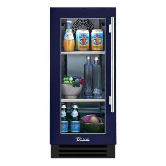 True 15 Inch 3.14 Cu. Ft. Left Hinge Glass Door Outdoor Refigerator – Cobalt w/ Pewter Handles – TUR-15-L-OG-C~DSK-078-H05