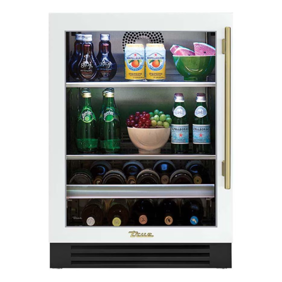 True 24 Inch 147 Can 13 Bottle Left Hinge Glass Door Outdoor Beverage Center – Matte White w/ Brass Handle – TBC-24-L-OG-C~DSK-030-H01