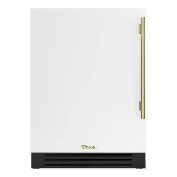 True 24 Inch 4.2 Cu. Ft. Left Hinge Outdoor Freezer – Matte White w/ Brass Handles – TUF-24-L-OP-C~DSK-030-H01