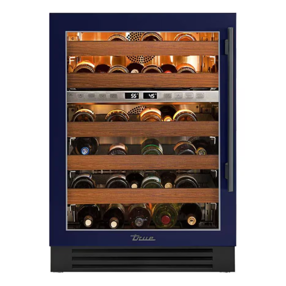 True 24 Inch 45 Bottle Left Hinge Glass Door Outdoor Dual Zone Wine Cabinet – Cobalt w/ Brass Handle – TWC-24DZ-L-OG-C~DSK-078-H01